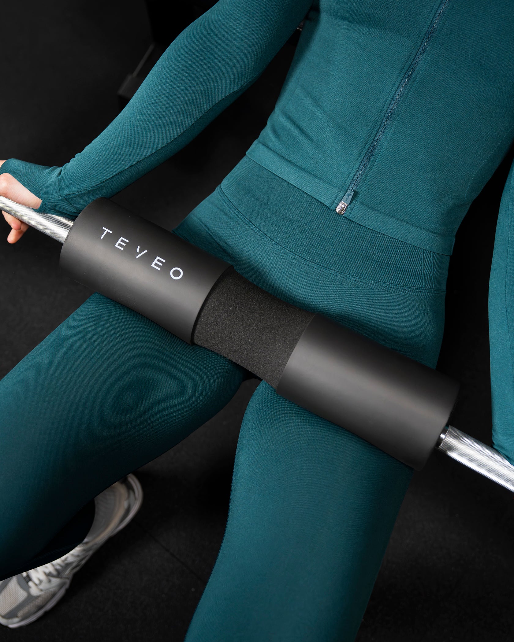 With the Lift Barbell Pad in black, you’re perfectly equipped for your next training session. Its one-size design fits any standard barbell, while the soft material cushions you from uncomfortable pressure points, even during heavy lifts. This barbell pad provides added comfort and stability throughout your workout. The contrasting TEVEO logo completes the design.