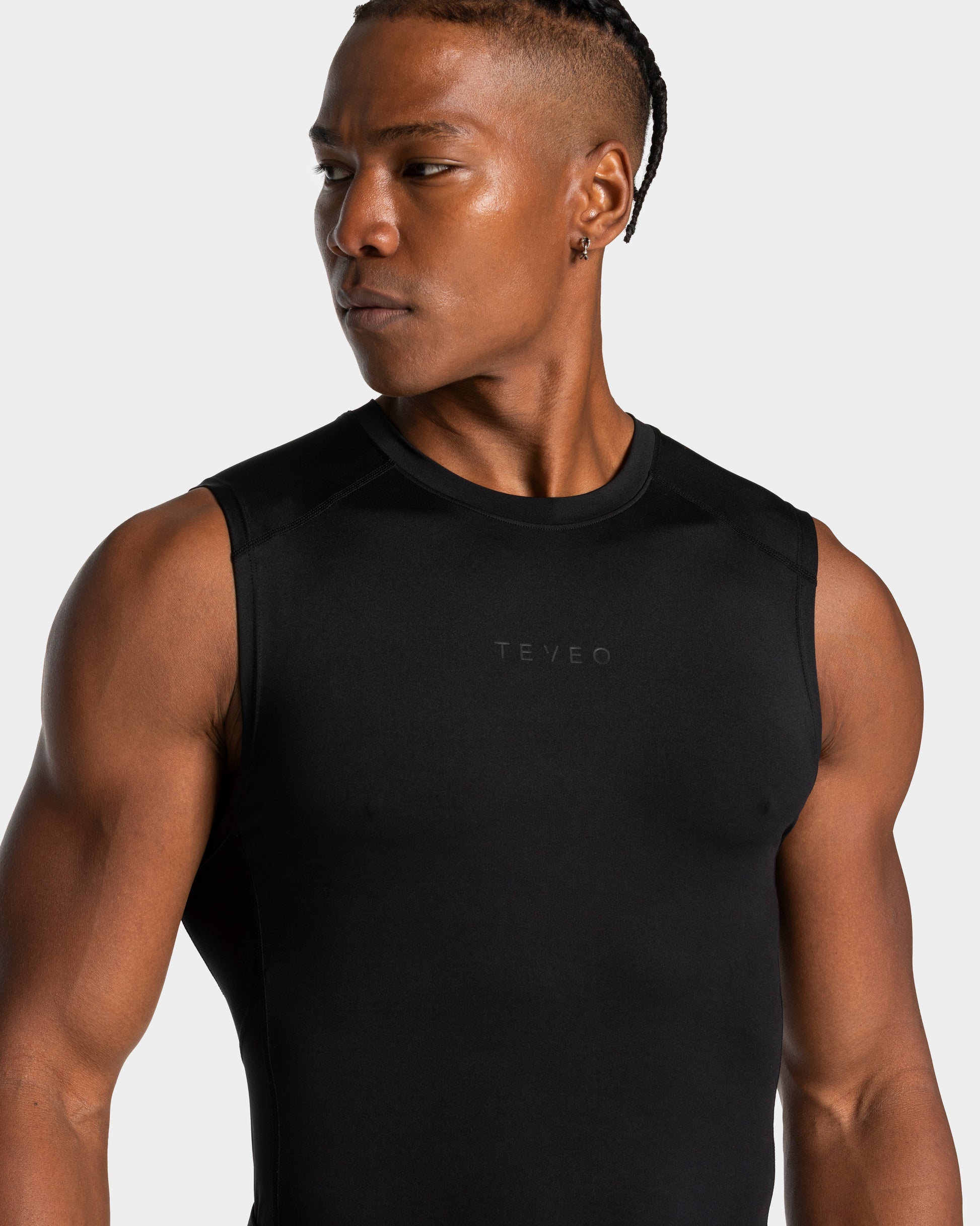 Our Pace Performance Tank in Black with a higher crew neck is the ideal choice for your run! The lightweight, breathable fabric combined with mesh panels under the arms keeps you comfortably dry – even when you’re pushing yourself to the limit. The elasticated, forward-set seams on the shoulders prevent chafing despite the close fit. A TEVEO silicone print on the inside also ensures your tank top stays perfectly in place. The design is finished with a reflective TV logo on the chest and an inner TEVEO logo neck tape.