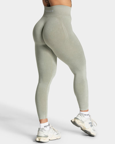 The Acid Bra in sage is cropped, but still offers good support during workouts. The front features a classic design with a stitched TEVEO logo, while the back has a striking lacing detail. This will give you a beautiful back.