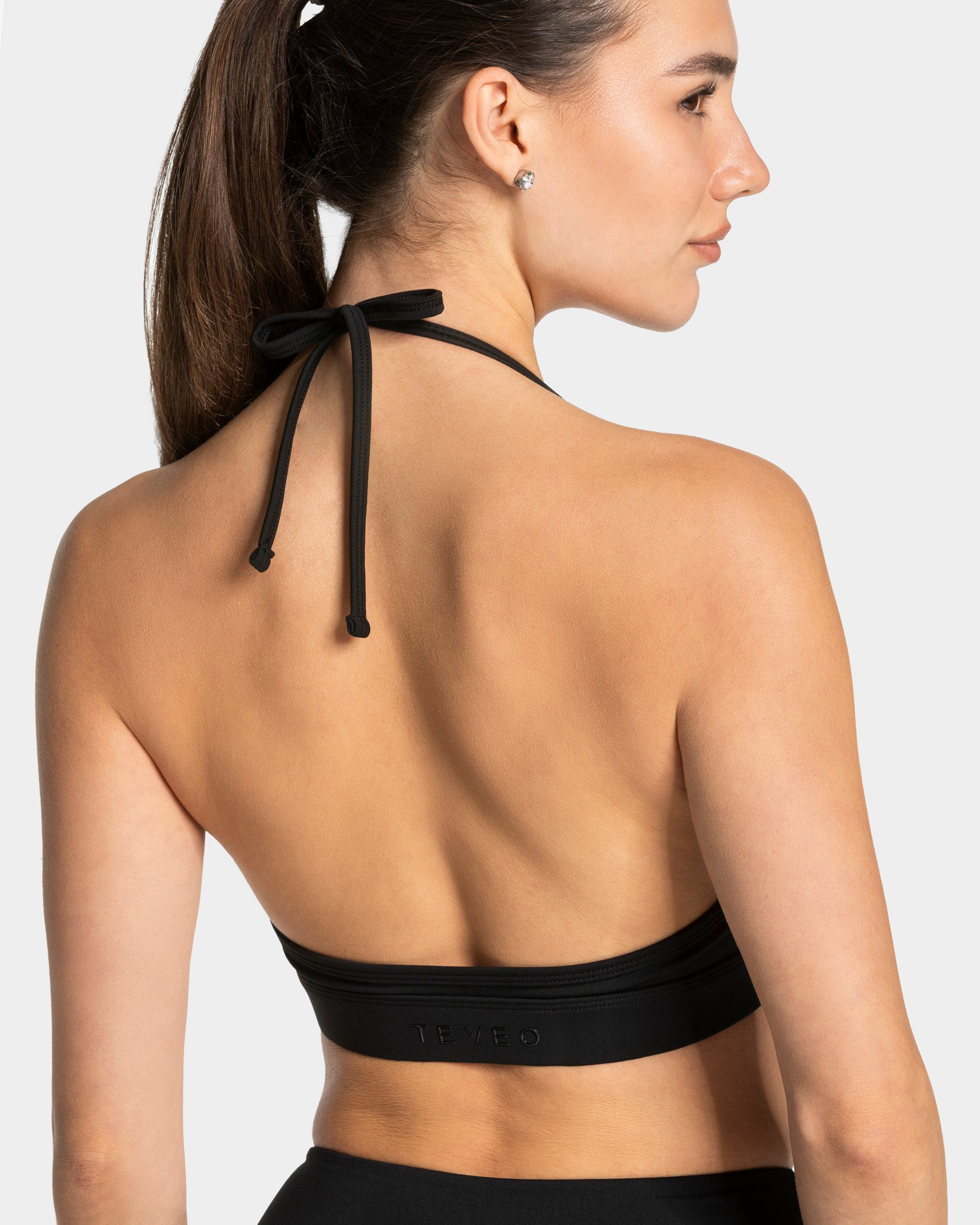 Whether you’re training or taking it easy: The Allrounder Halterneck Bra in black is your new wardrobe must-have. The wide, elastic underband of the V-neck bra provides secure support without slipping, while the halterneck strap and removable pads offer just the flexibility you need. Crafted from ultra-soft, breathable fabric, it gently hugs your body for all-day comfort, giving you that feel-good moment every time you wear it. The shiny TEVEO logo on the back adds a sleek finishing touch.