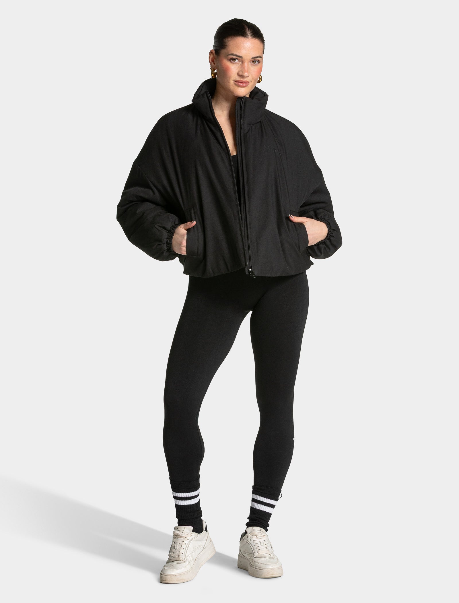 The Lift Bomber Jacket in black pairs seamlessly with other pieces from the Lift collection.