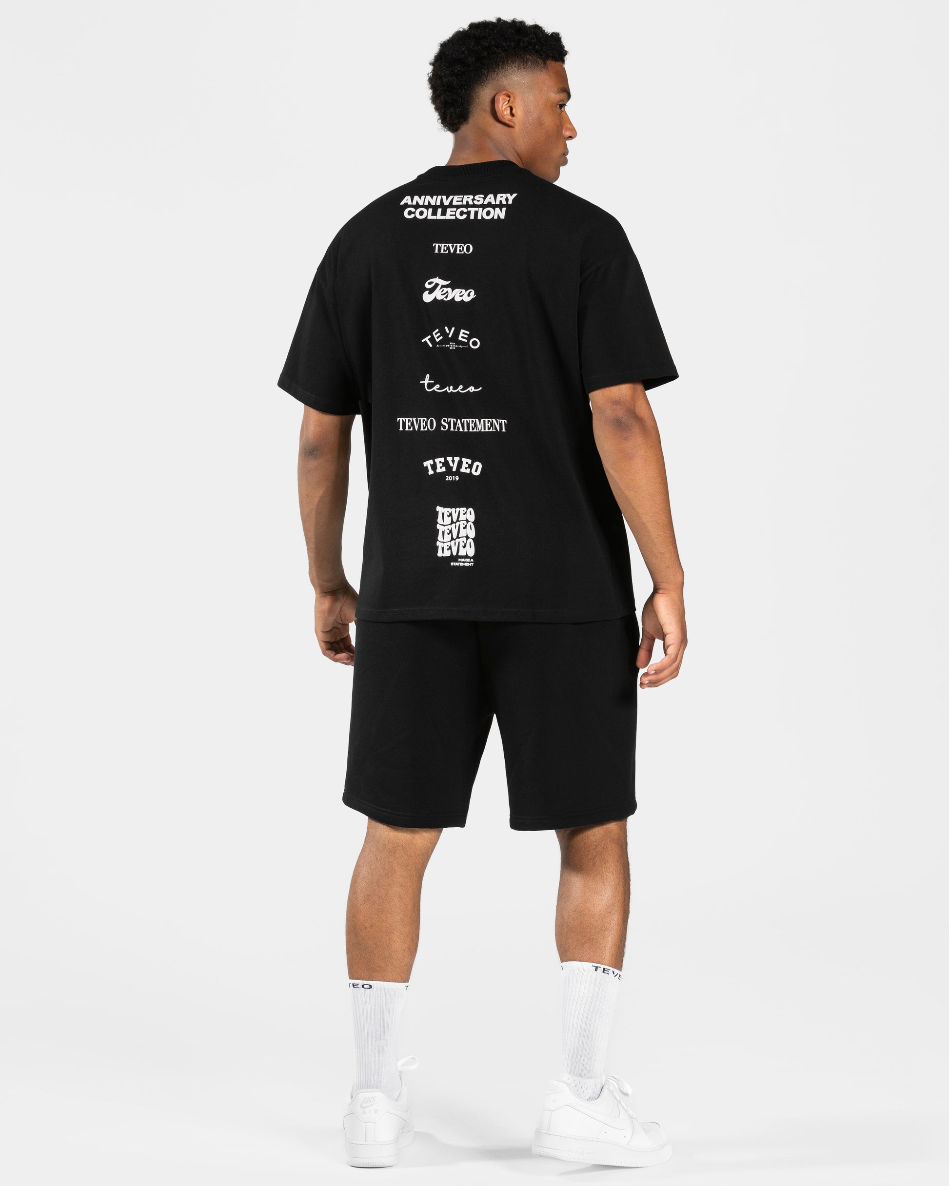 The back of the Anniversary T-Shirt Men in black features the different TEVEO logos and is the absolute highlight of the T-shirt. It is ideal for both training and everyday wear.