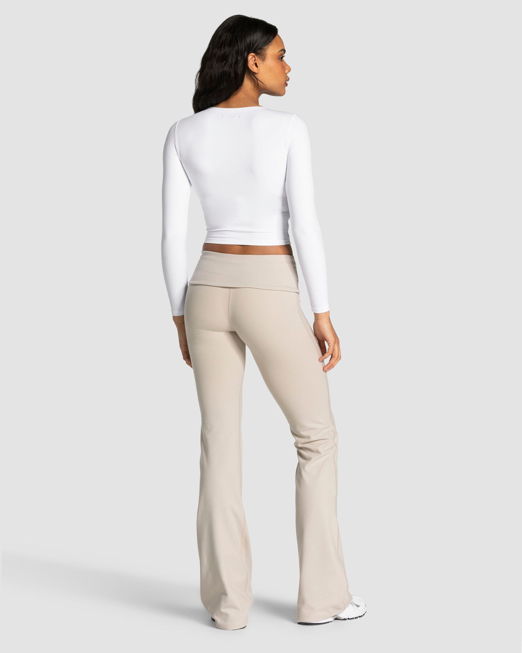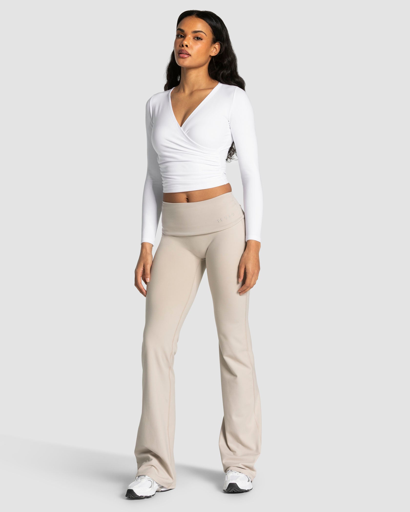 The Mellow Gathered Longsleeve in white feels like a second skin thanks to its ultra-soft fabric. The wrap-style front adds a feminine touch while creating a flattering, figure-hugging fit. An integrated silicone strip on the left side of the neckline ensures a secure hold, while the tonal embroidered logo on the back adds a stylish finishing touch.