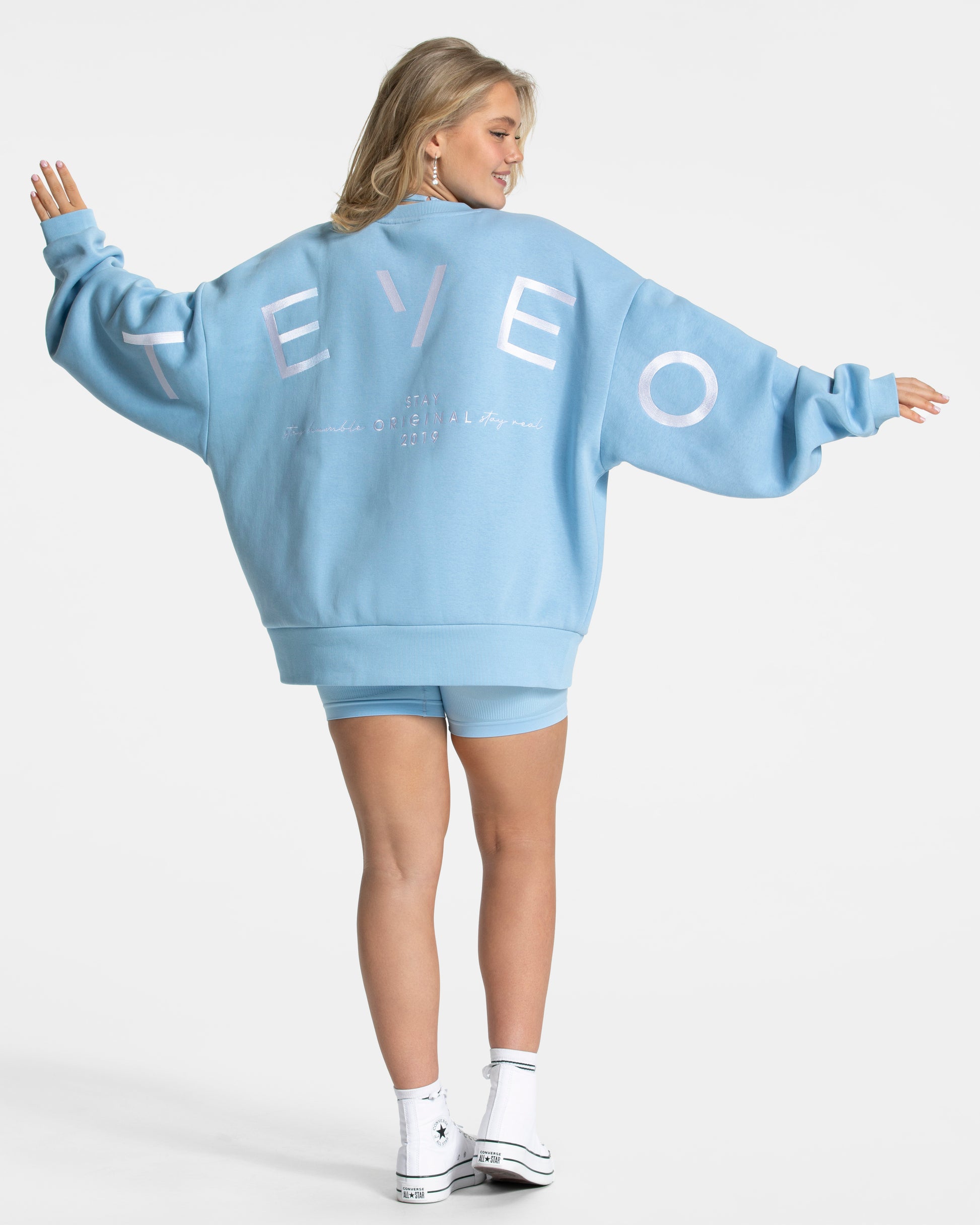 Create your signature TEVEO look! Our Signature Oversized sweater in ice blue is perfect for cool autumn days, your warm-up or just for everyday wear. The highlight of the sweater is the large, knitted TEVEO logo on the back.