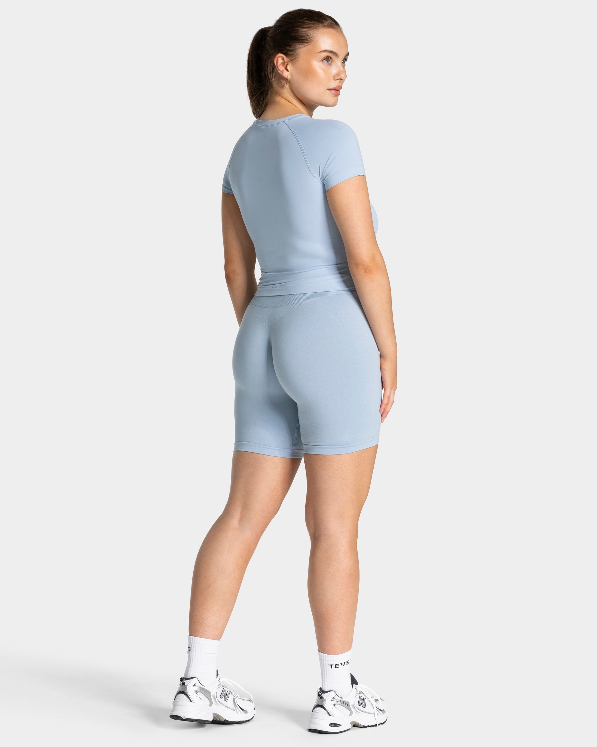 The Timeless Pro T-Shirt is also available in other colours and pairs perfectly with our Timeless Pro Leggings and Shorts, as well as the Timeless Pro Covert Scrunch Leggings and Shorts. Here’s a quick overview of all the benefits of the Timeless Pro T-Shirt in baby blue: