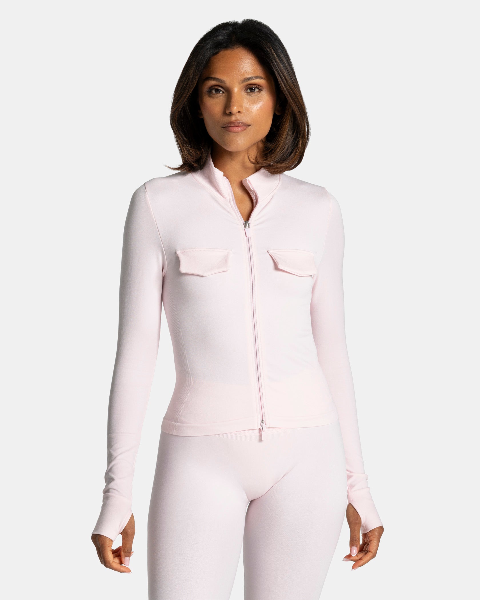 The Lift Cargo Zip Jacket in blossom pairs perfectly with other pieces from the Lift collection.