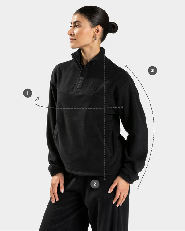 The Fleece Half Zip Sweater in black pairs perfectly with the Fleece Straight Leg Joggers. Here’s a quick overview of all the benefits of the Fleece Half Zip Sweater: