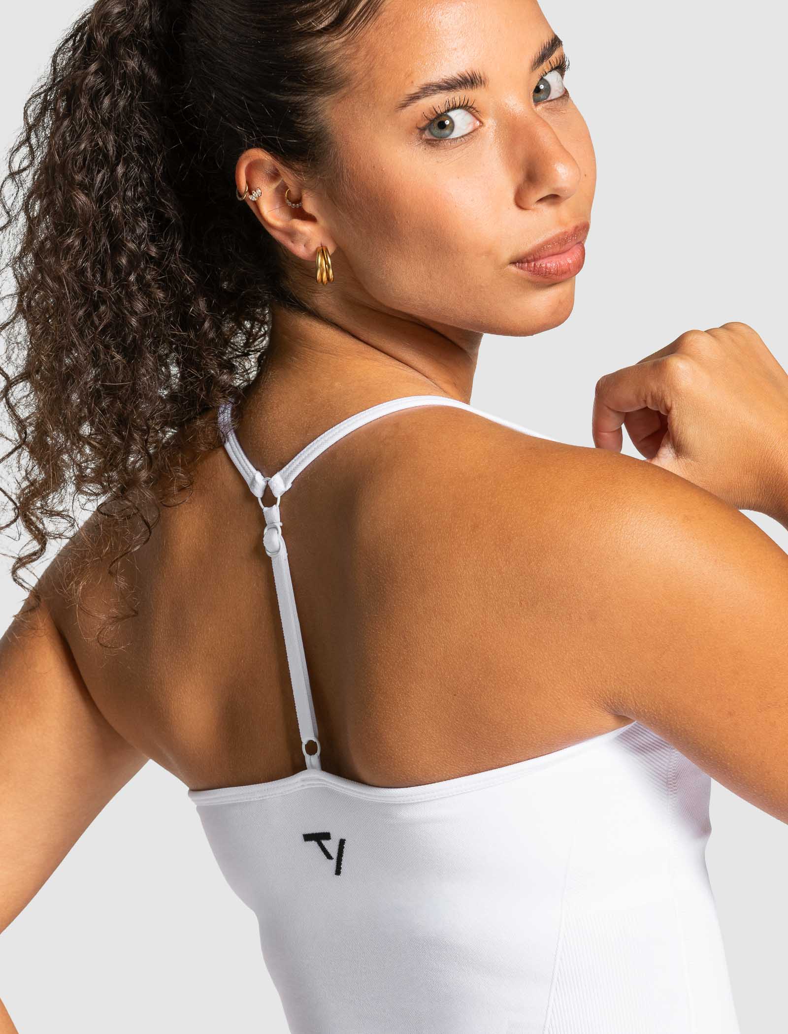 The Lift Cami Top in white delivers powerful compression thanks to its piqué texture, giving you the support you need to move freely through any high-performance workout. In addition, the Cami Top offers a sculpting effect thanks to the ribbed detailing under the bust and at the waist. The integrated bra with removable pads and adjustable strap ensures maximum comfort. The design is finished with an embroidered contrasting TV logo.