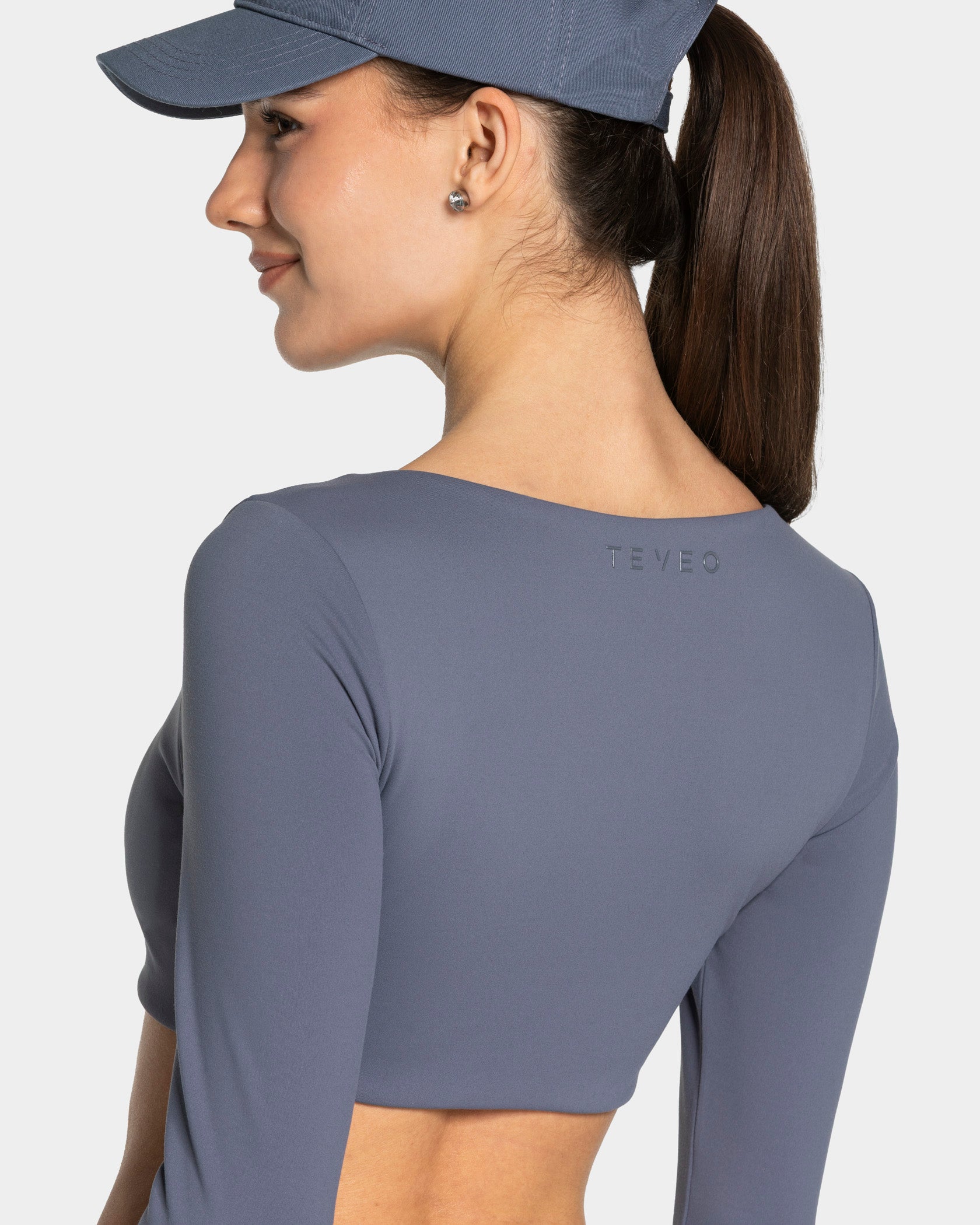 Whether you’re training or taking it easy: The Cropped Longsleeve Top in titanium is your new wardrobe essential. With its minimalist cropped design and Square neck, this versatile piece features a built-in bra with removable pads and an elasticated underband for added support. The elasticated underband ensures the top stays in place without riding up. Crafted from ultra-soft, breathable fabric, it gently hugs your body for all-day comfort, giving you that feel-good moment every time you wear it. The shiny TEVEO logo on the back adds a sleek finishing touch.