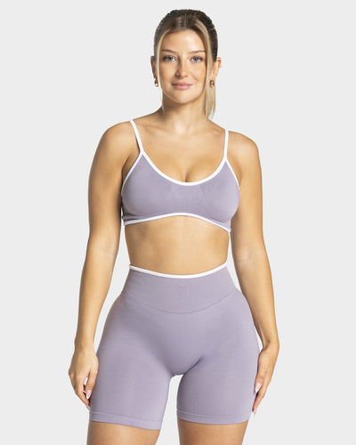 The Contrastline Sculpt Scrunch Shorts are available in several colours and pair perfectly with the Contrastline Longsleeve or the Contrastline Sports Bra. Here’s a quick overview of all the benefits of the Contrastline Sculpt Scrunch Shorts in lavender: