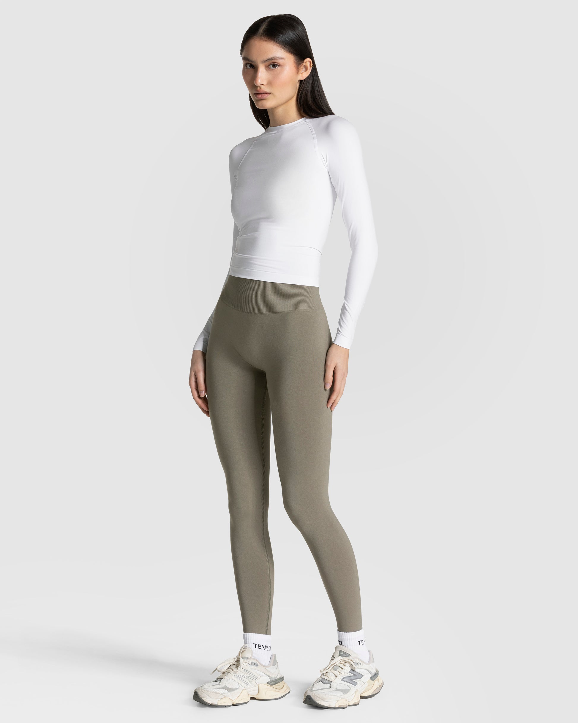 The Timeless Pro Longsleeve is also available in other colours and pairs perfectly with our Timeless Pro Leggings and Shorts, as well as the Timeless Pro Covert Scrunch Leggings and Shorts. Here’s a quick overview of all the benefits of the Timeless Pro Longsleeve in white: