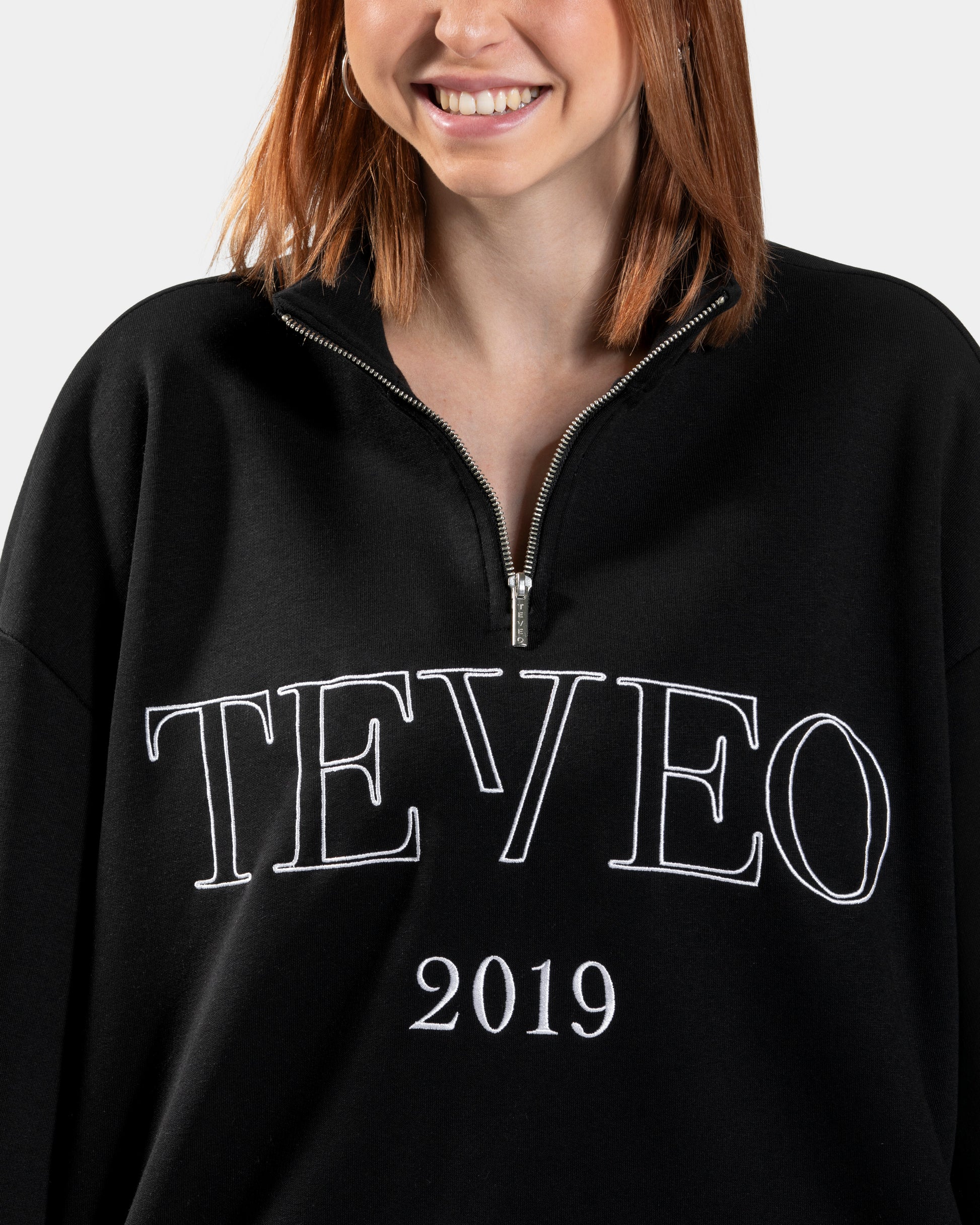 Cosiness and comfort are very important to us. You will love the oversized fit and super soft fabric of our Femme Half Zip Sweater in black. The waistband can be tightened or loosened with the drawstring.