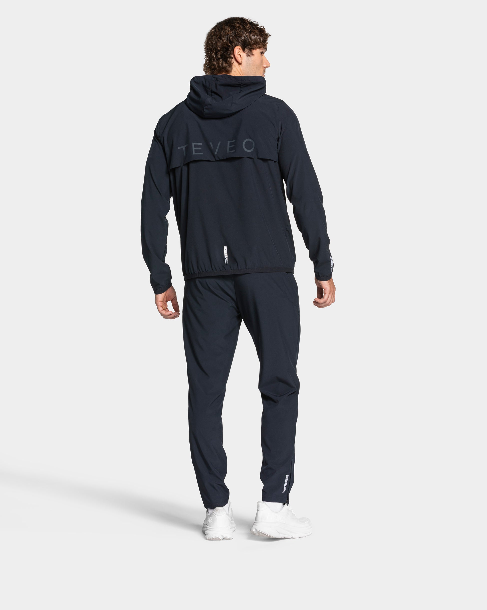 The Pace Performance Jacket in midnight combines lightweight, stretchy fabric with a regular fit for uncompromising performance. Side pockets and a chest pocket with a low-profile puller keep your essentials secure on the run, while the ventilated back panel featuring a tonal TEVEO logo helps regulate your body temperature. The elasticated hem and neoprene tape at the cuffs provide a secure fit. With an adjustable hood featuring dual toggles, you’ll stay flexible in any weather. Reflective logo details on the chest and lower back complete the design, enhancing visibility in low light.
