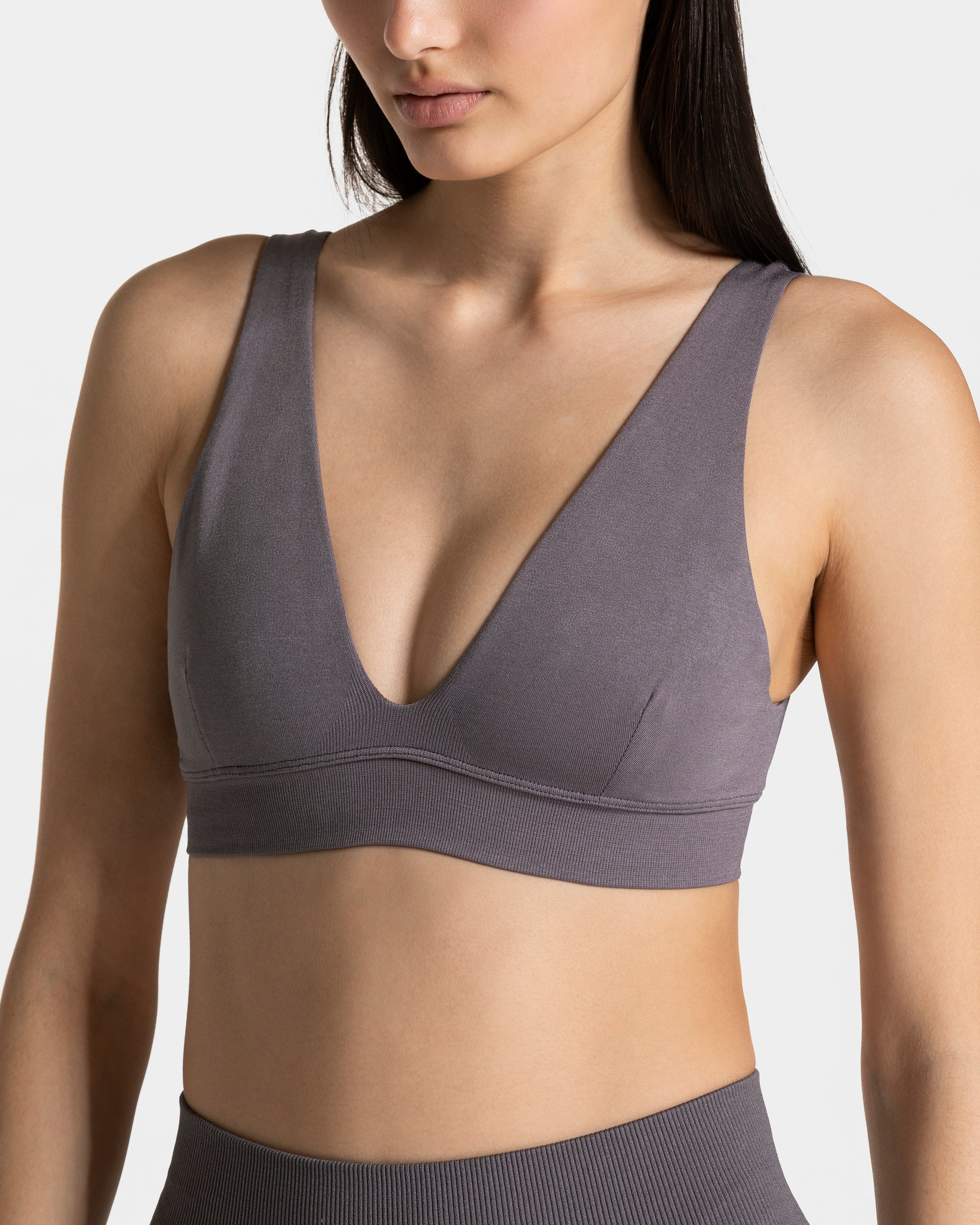 The Timeless Pro Triangle Bra in graphite combines elegant everyday comfort with the natural breathability of seamless technology and premium support. The deep V-neckline and shaping design create a flattering décolleté while providing medium support.