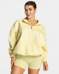 Cosiness and comfort are very important to us. You will love the oversized fit and super soft fabric of our Femme Half Zip Sweater in frozen . The waistband can be tightened or loosened with the drawstring.
