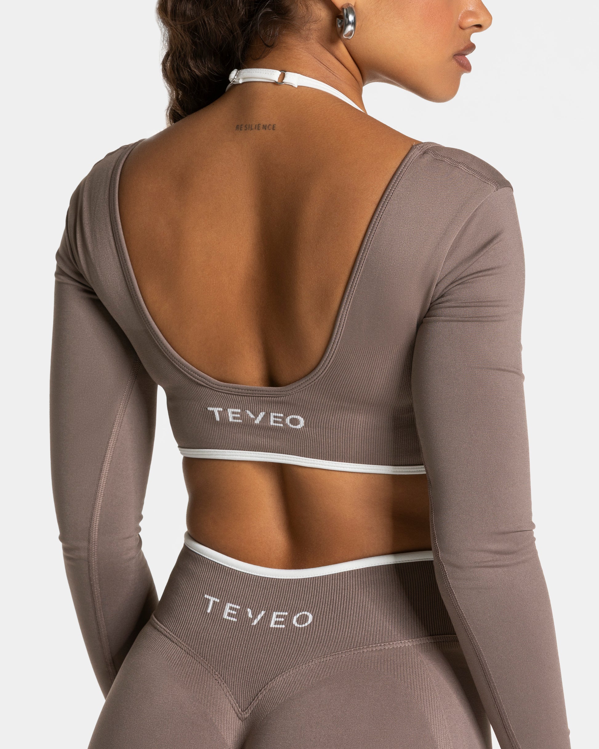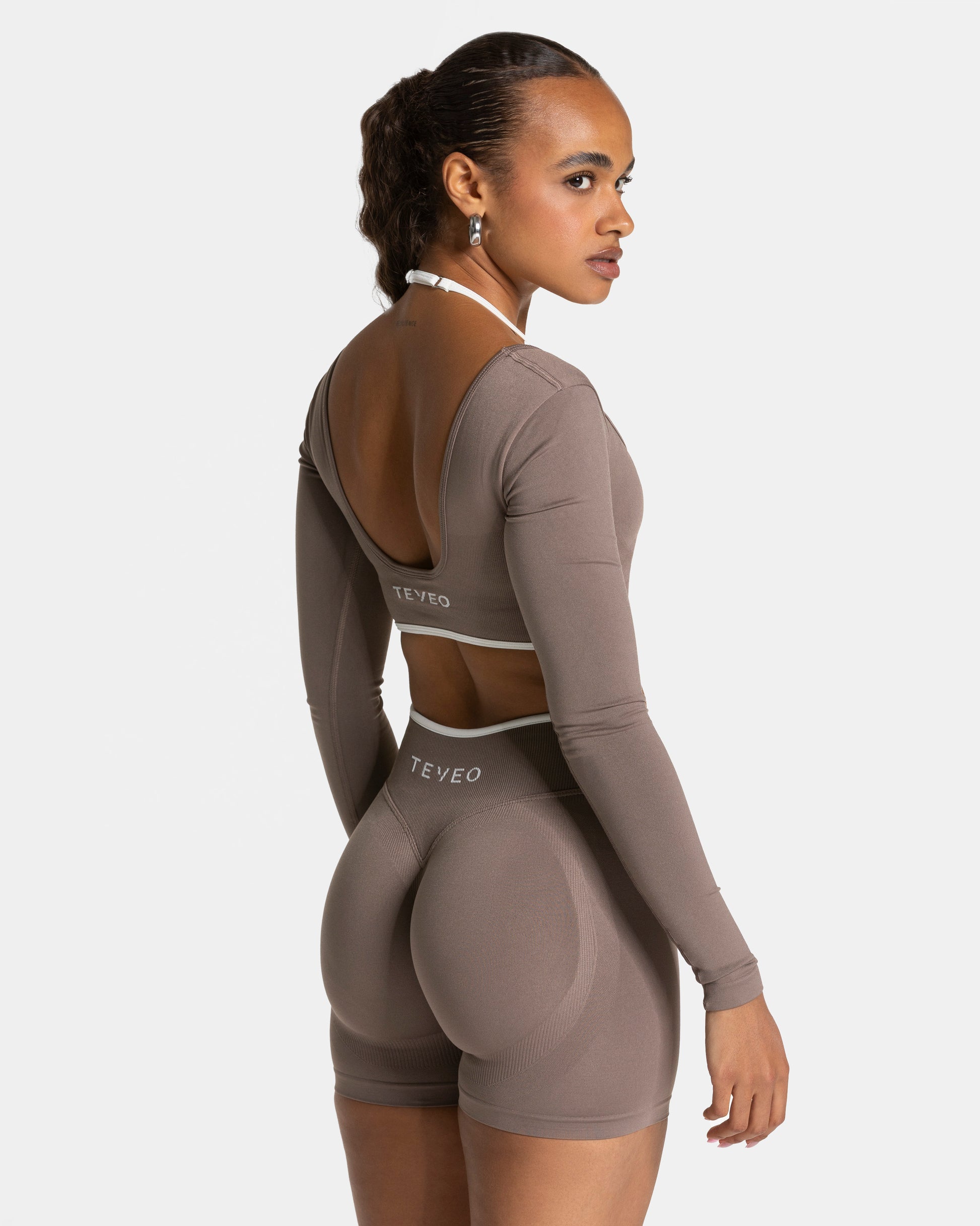 The Contrastline Long Sleeve is available in several colours and pairs perfectly with the Contrastline Sculpt Scrunch Shorts or Leggings, as well as the Contrastline Joggers – for a look that delivers on performance and style. Here’s a quick overview of all the benefits of the Contrastline Longsleeve in mocha: