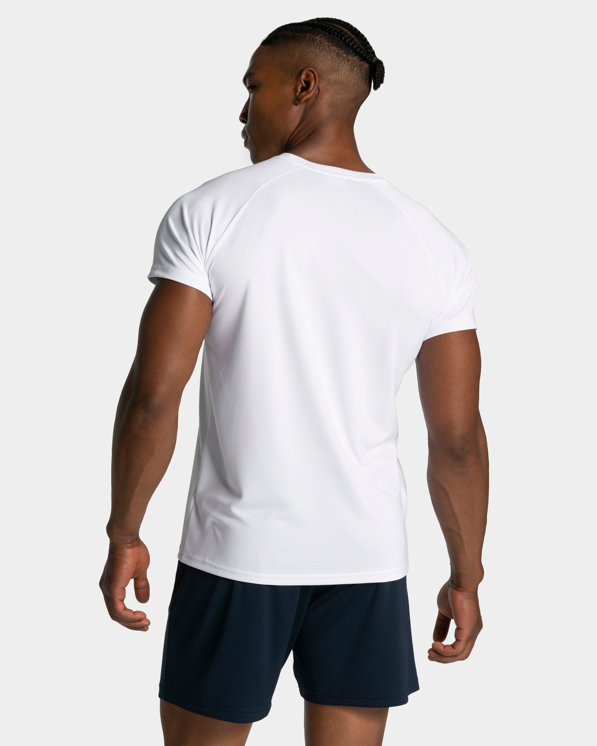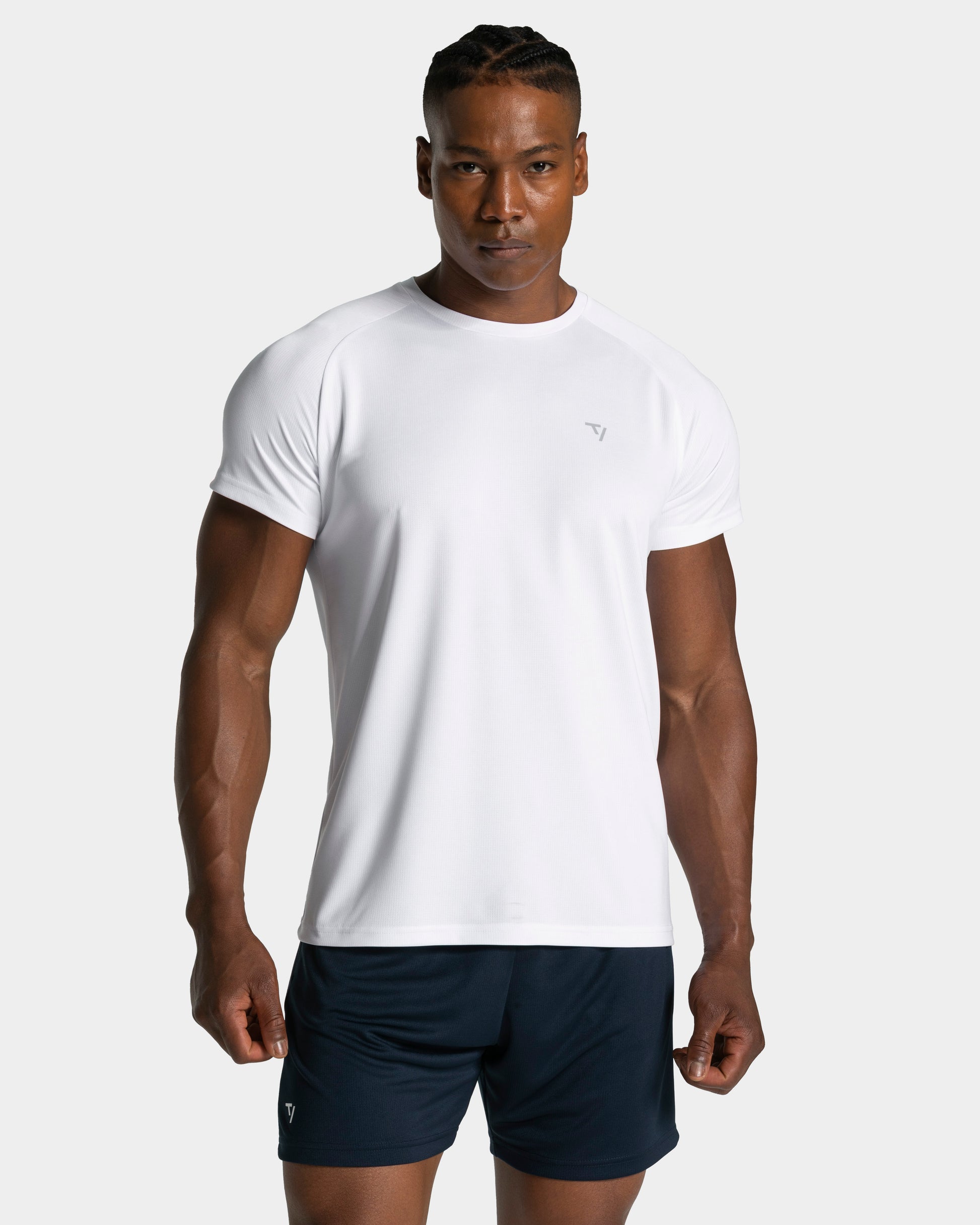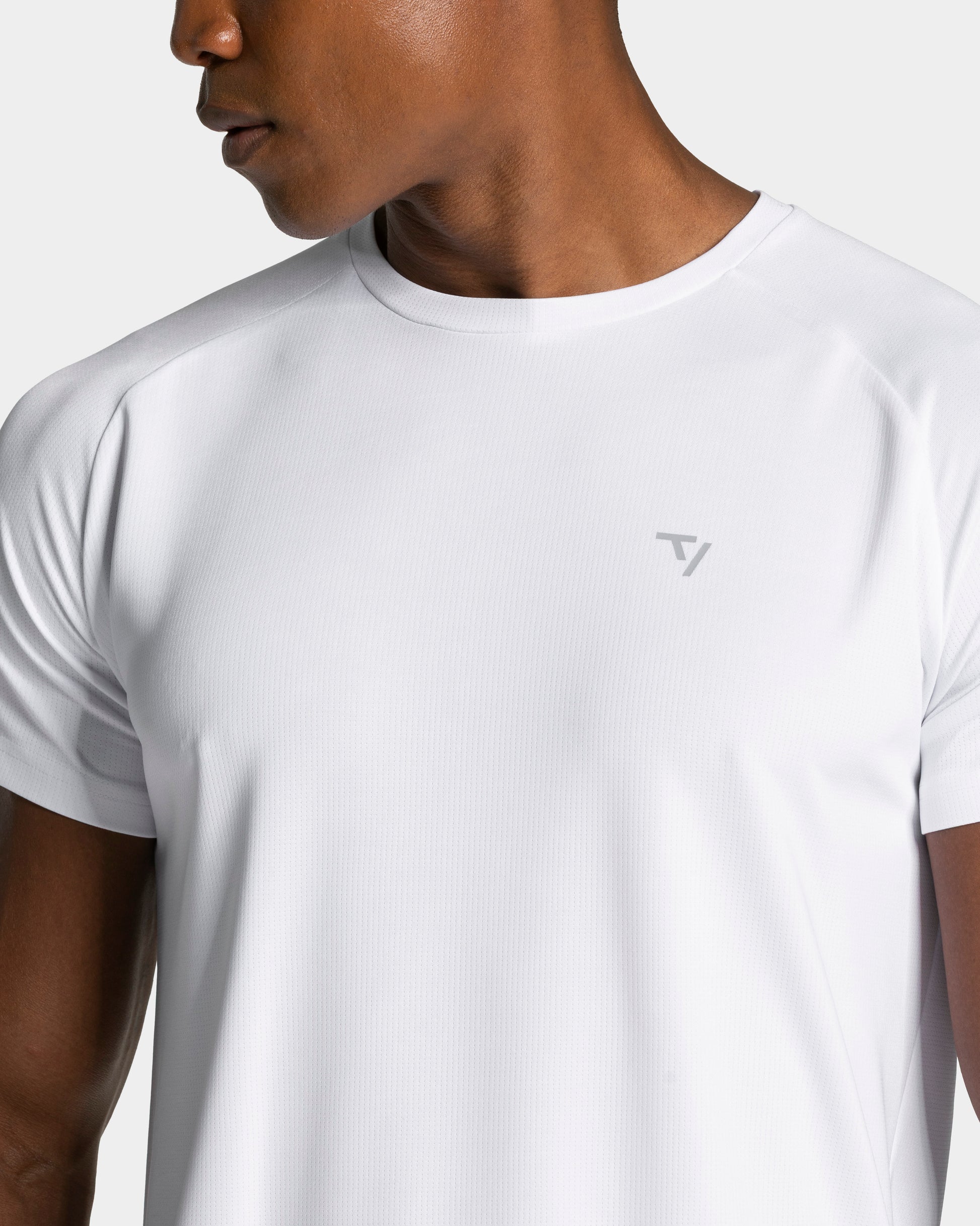 La camiseta de malla Baseline Mesh en color blanco destaca por su diseño sencillo y el logotipo TV en color gris claro en contraste le da el toque deportivo distintivo. Las mangas raglán te dan libertad total de movimiento y el material transpirable de malla se mantiene seco aumentando el confort, incluso cuando lo das todo en un entrenamiento.