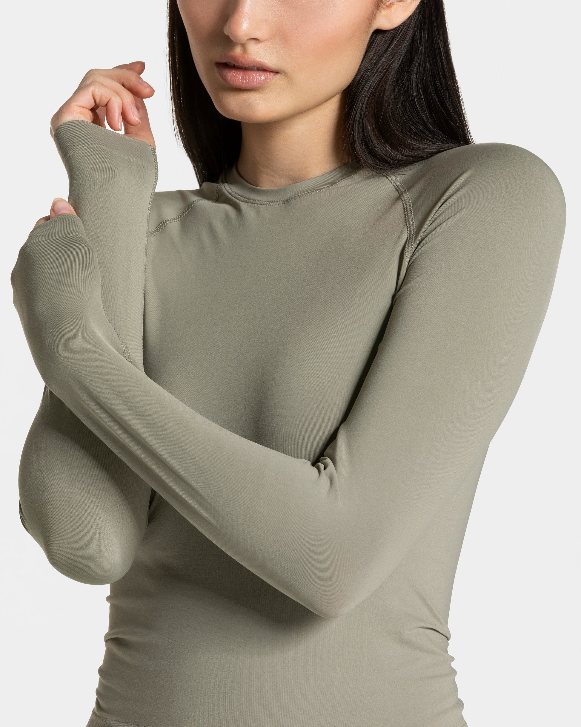 Camiseta de manga larga Timeless Pro en caqui: la sensación de una segunda piel, pero mejor. Ultraligera, supersuave y sin costuras para una comodidad de uso inigualable. El material transpirable se adapta al cuerpo con facilidad, sin apretar. Libertad de movimiento máxima y auténtica elegancia: un esencial que se convierte en referente.