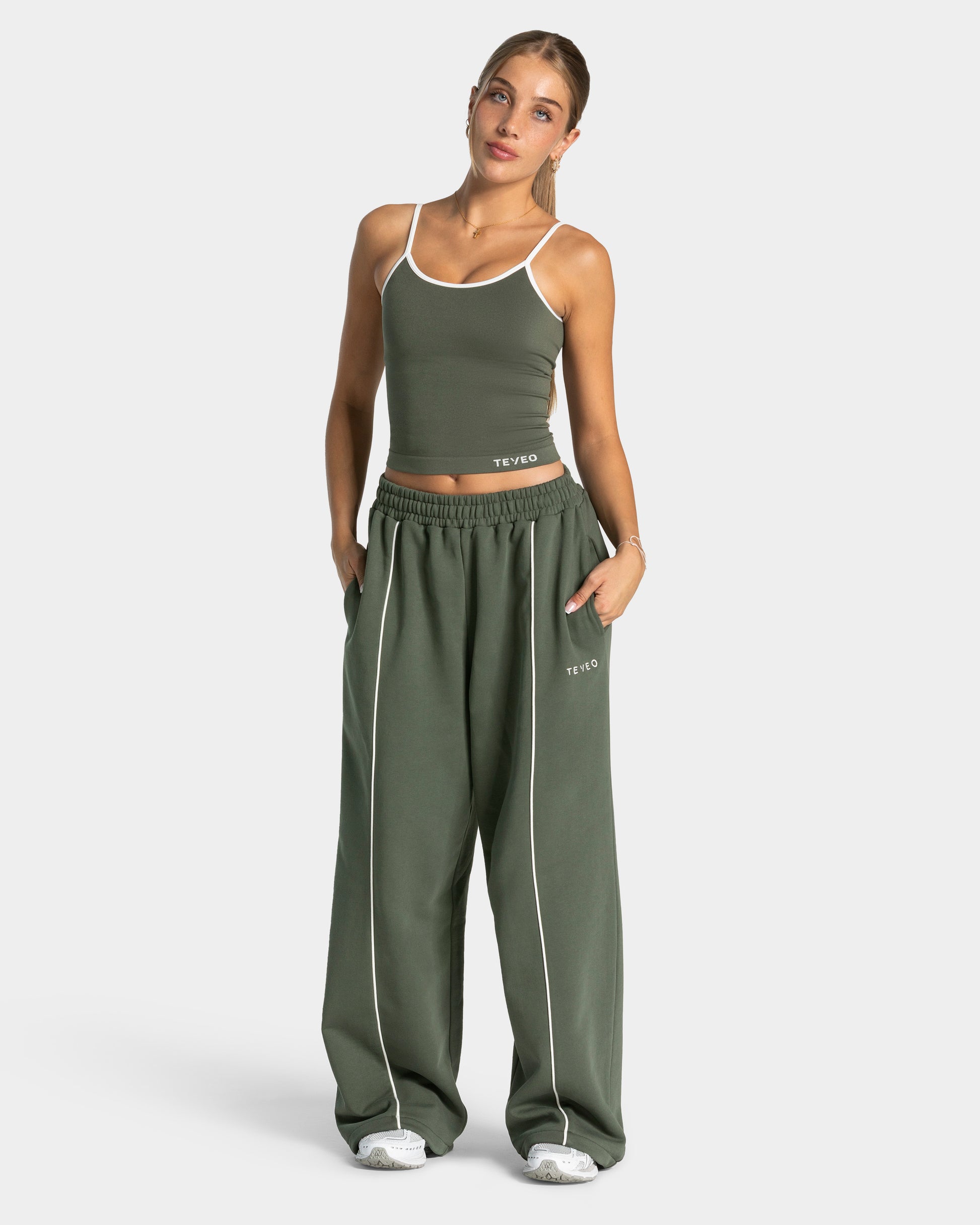 La camiseta de tirantes finos Contrastline está disponible en varios colores y combina perfectamente con los shorts o leggings Contrastline Sculpt Scrunch. Aquí puedes consultar todas las ventajas de la camiseta de tirantes finos Contrastline en color caqui: