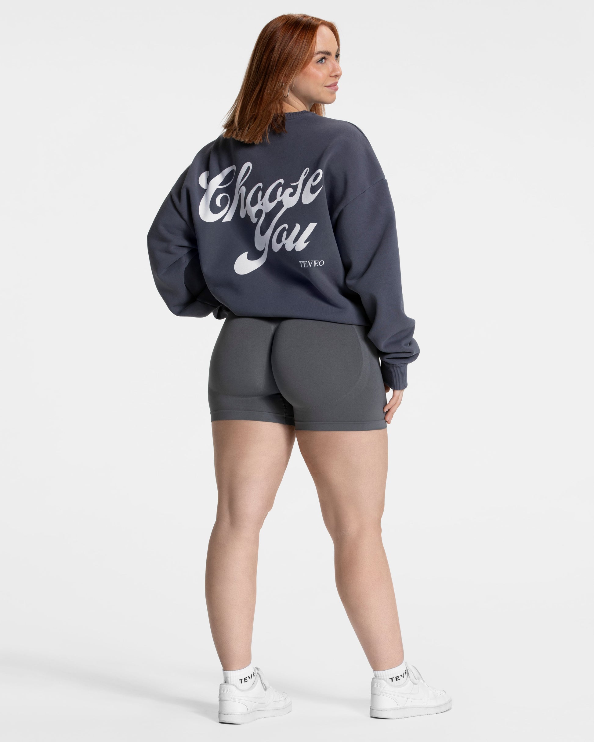 Nuestra sudadera oversize Pure de TEVEO en color grafito es perfecta para los días más fríos, para calentar antes de tus entrenamientos o para llevarla en el día a día. La sudadera destaca por su espalda en la que tiene impreso al agua en gran tamaño «Choose You».