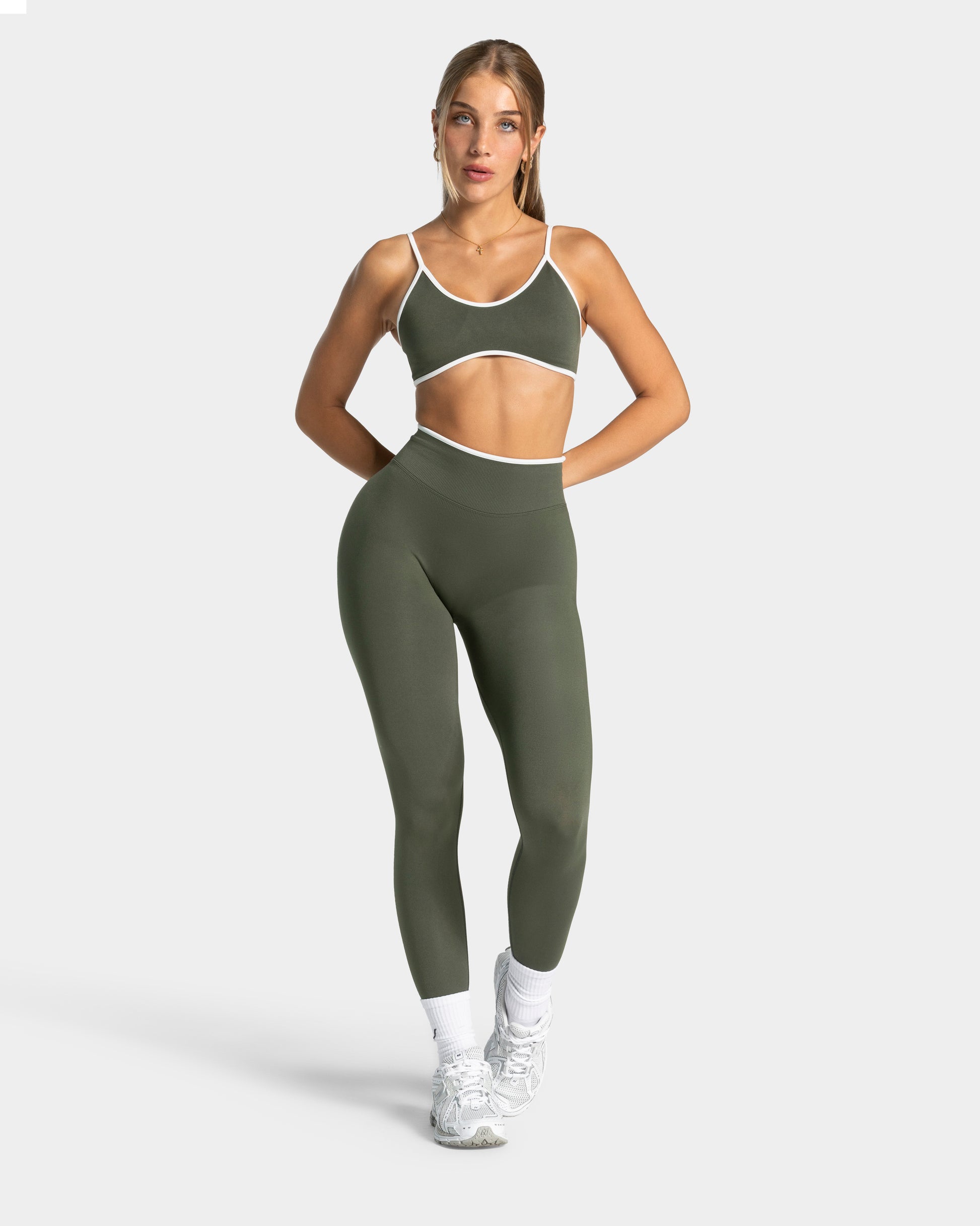 La brassière Contrastline est disponible en plusieurs couleurs. Elle est parfaitement assortie au short et au legging Sculpt Scrunch Contrastline, ainsi qu’au pantalon de jogging Contrastline. Voici un aperçu de tous les avantages de la brassière Contrastline kaki :