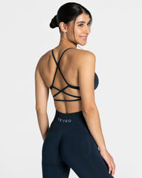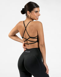 La brassière Pure Midnight est courte mais offre un bon maintien lors de l’entraînement. Si, de face, elle se distingue grâce à son design classique avec le logo TEVEO brodé, de dos, on remarque son laçage élaboré. Elle te fera ainsi un dos magnifique.
