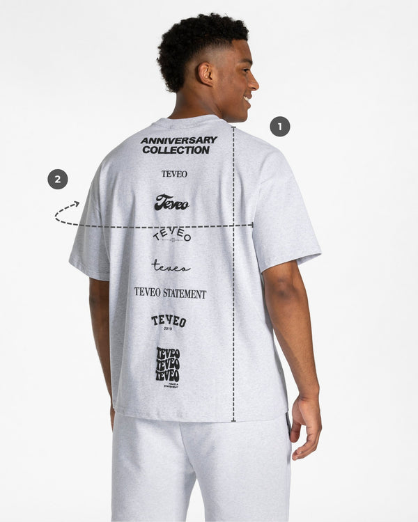 Le t-shirt Anniversary Men gris clair réunit les différents logos TEVEO au dos, la caractéristique marquante du t-shirt. Il convient aussi bien pour l’entraînement que pour le quotidien.