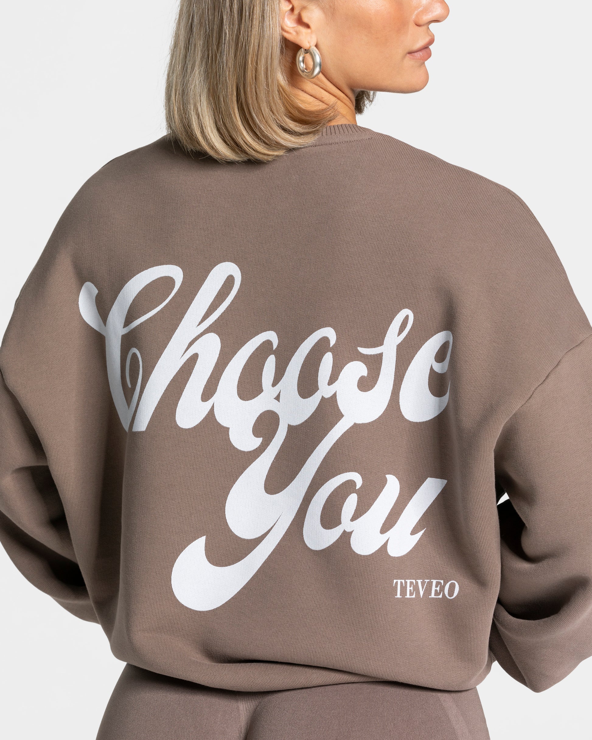 Notre sweat-shirt oversize Pure TEVEO moka est parfait pour te réchauffer au quotidien lors des fraîches journées d’automne. Ce sweat-shirt se distingue grâce à sa grande impression en phase aqueuse « Choose You » dans le dos.