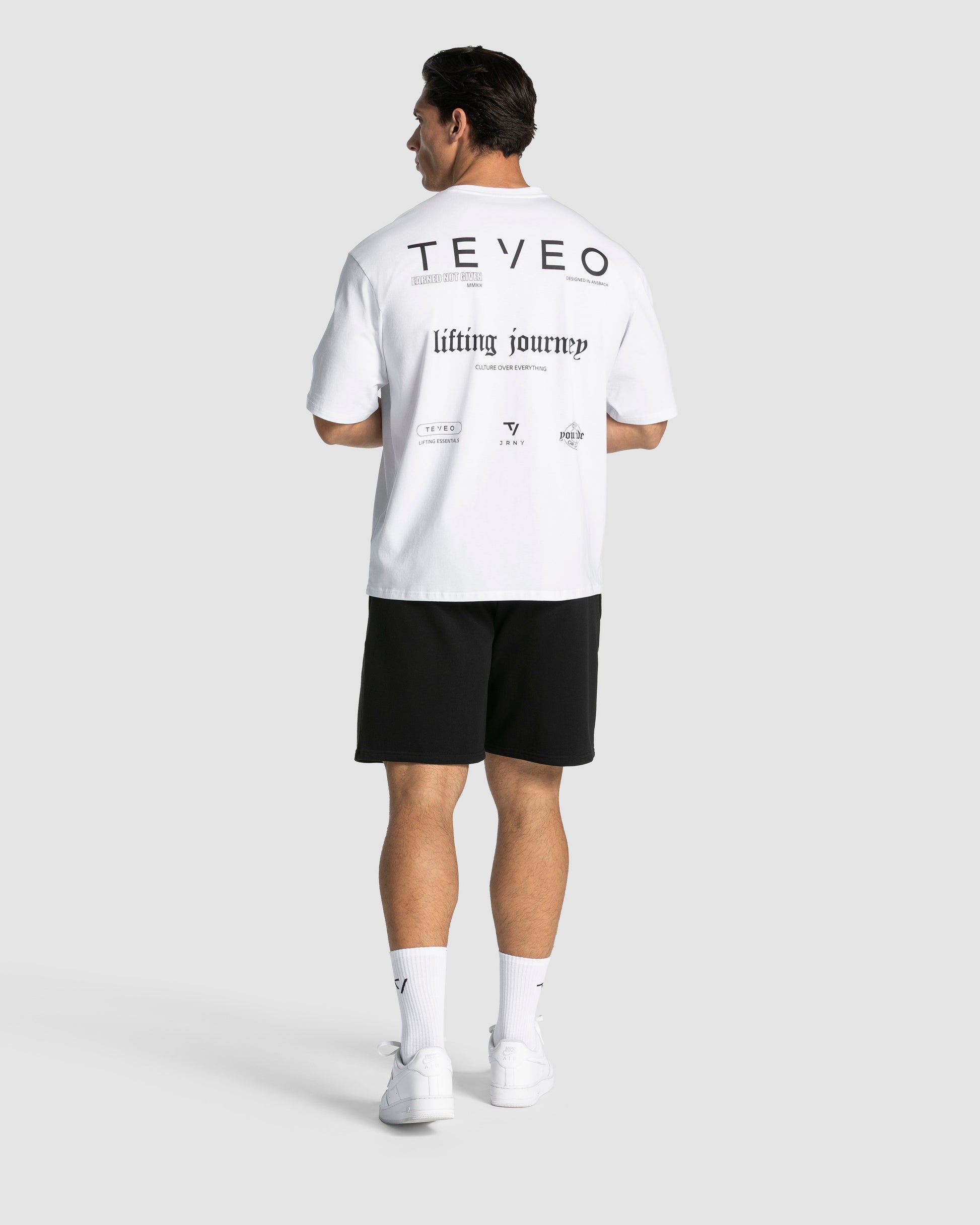 Avec sa coupe oversize, le t-shirt Lifting Club blanc t’offre ce dont tu as besoin : puissance, fonctionnalité et look tendance. Le design parle la langue de l’investissement authentique. Le logo TEVEO Lifting Journey à l’avant affiche ton style. Avec son grand artwork, l’imprimé à l’arrière fait également forte impression, et il est complété par trois imprimés caractéristiques à l’ourlet : TV Journey, TEVEO Lifting Essentials et « One Day or Day One – You Decide » – une mentalité qui imprègne toute la collection. La bande de propreté présentant le logo de TEVEO à l’intérieur complète ton look.