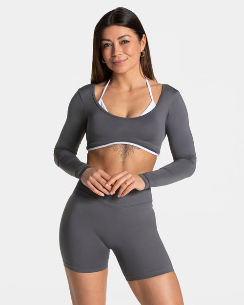 Gli shorts Sculpt Scrunch Contrastline sono disponibili in diversi colori e si abbinano perfettamente alla maglia a manica lunga Contrastline o al reggiseno Contrastline. Qui trovi nuovamente tutti i vantaggi degli shorts Sculpt Scrunch Contrastline nel colore grafite: