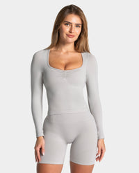 La maglia a manica lunga Charming Pro nel colore Moon conquista con il suo scollo profondo con un design arricciato nella zona del seno. Il reggiseno integrato con pad removibili e fascia interna a costine offre un sostegno affidabile. Con il reggiseno Charming Pro ricevi 2 pad intercambiabili per ulteriori personalizzazioni, mentre il logo a contrasto sul retro aggiunge un tocco discreto.