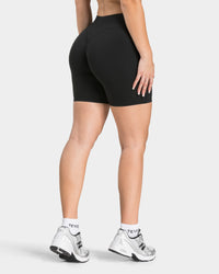 Per l’allenamento e per la quotidianità: Gli shorts Allrounder in nero hanno un taglio più lungo (6 Inch), offrendo maggiore comfort e sostegno. La vestibilità sagomata con fascia a V modellante in vita dona un look femminile — senza bisogno dell’effetto scrunch. Un logo 3D stampato tono su tono sul retro completa il look con stile.
