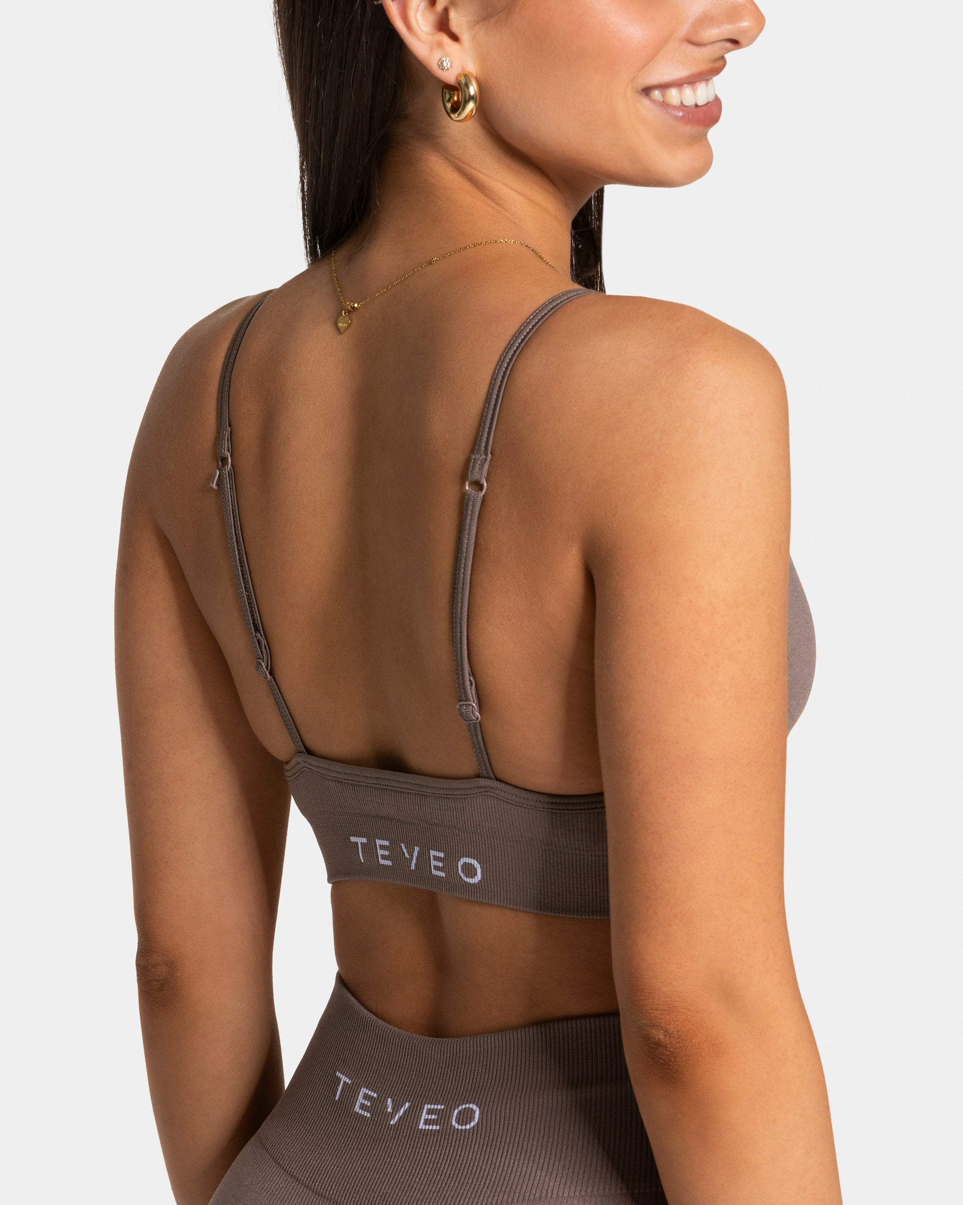 Biustonosz Timeless Pro w kolorze mokka: regulowane ramiączka możesz nosić w sposób klasyczny lub skrzyżowane na plecach – tak jak lubisz. Dzięki prążkowanej strukturze w pasie biustonosz zapewnia średnie podtrzymanie i łączy elegancki wygląd z funkcjonalnością. Kontrastowe logo z tyłu uzupełnia minimalistyczny design.