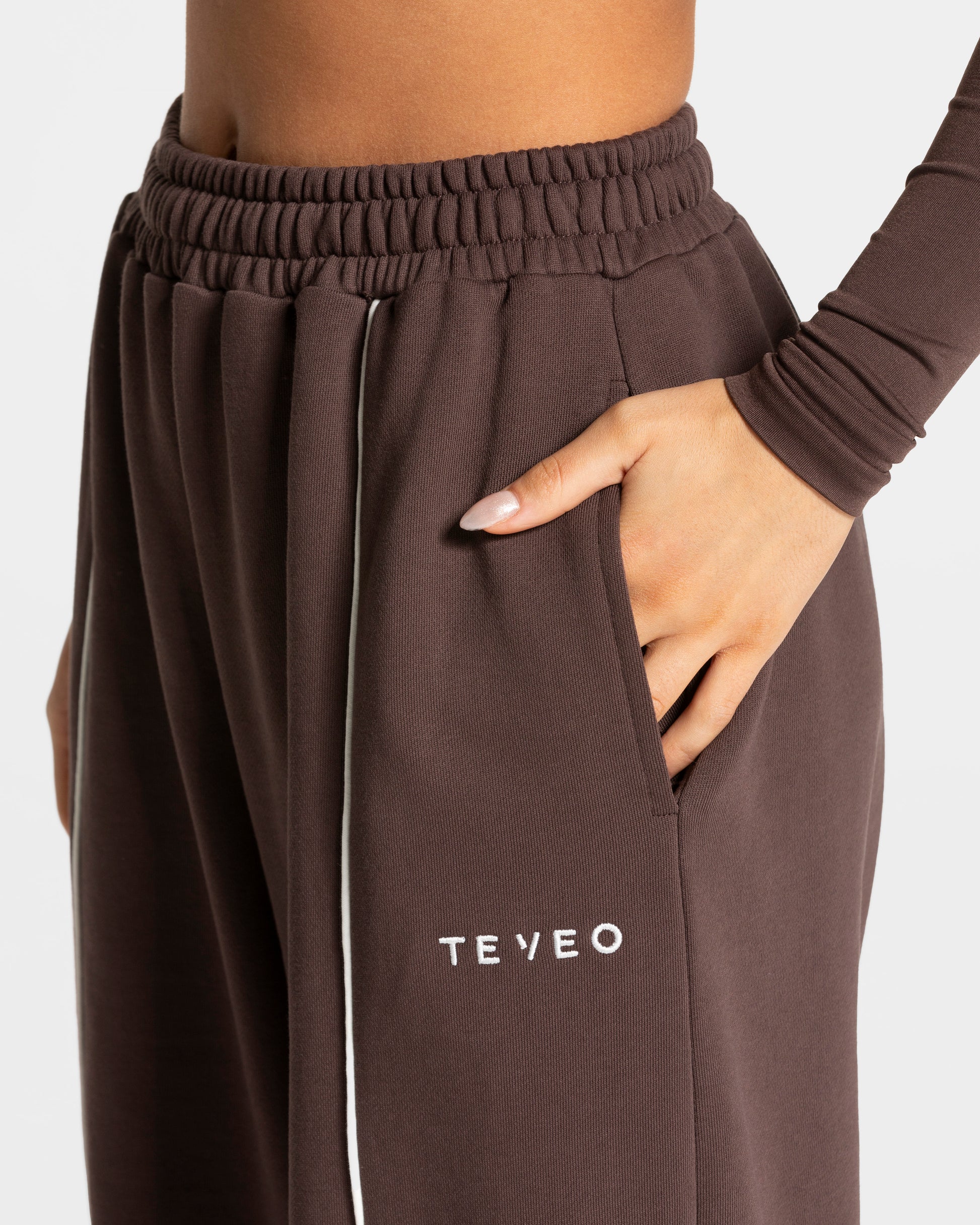 Joggery Contrastline Wide Leg w kolorze espresso łączą swobodną wygodę ze sportowym stylem. Krój oversize z regulowaną gumką na końcach nogawek i troczkiem w pasie zapewnia indywidualne możliwości dopasowania. Jednocześnie białe kontrastowe szwy nadają stylowe akcenty. Joggery Contrastline można łączyć na wiele sposobów, zarówno w stylizacjach na trening, jak i na co dzień.
