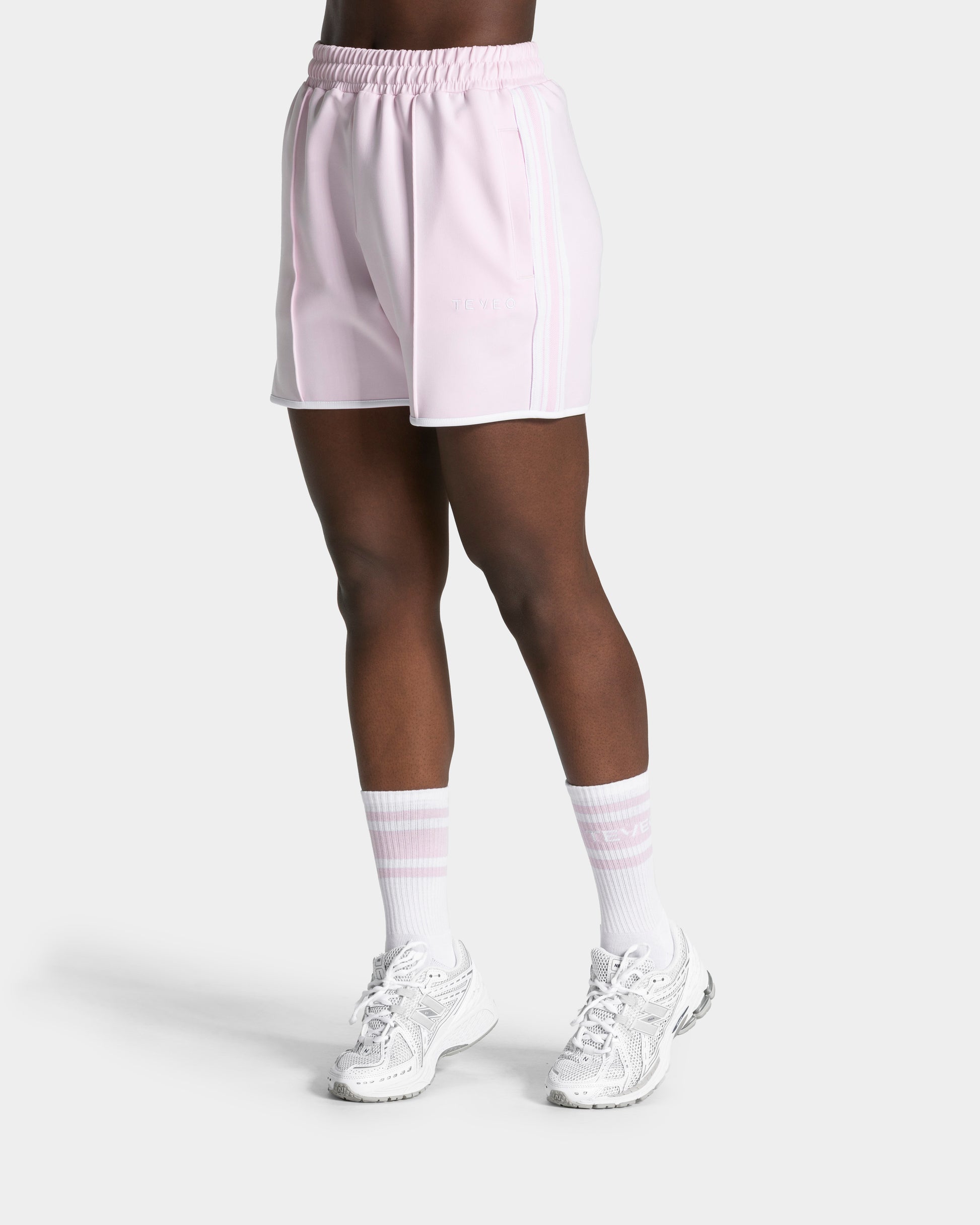 Die Club Shorts in Blossom kombiniert markante Kontrast-Streifen mit einer präzisen Biese – ein Look mit Wiedererkennungswert. Der mittellange Schnitt mit dem Kontrastpiping am Saumabschluss bringt dabei die perfekte Balance aus Sportlichkeit und Style. Ein elastischer Bund mit Kordelzug sorgt für individuelle Passform, Reißverschlusstaschen mit Staydown Puller sichern deine Essentials. Das gestickte TEVEO Kontrast-Logo und eine angedeutete Leistentasche vervollständigen den Look. Für alle, die ihren eigenen Standard setzen.