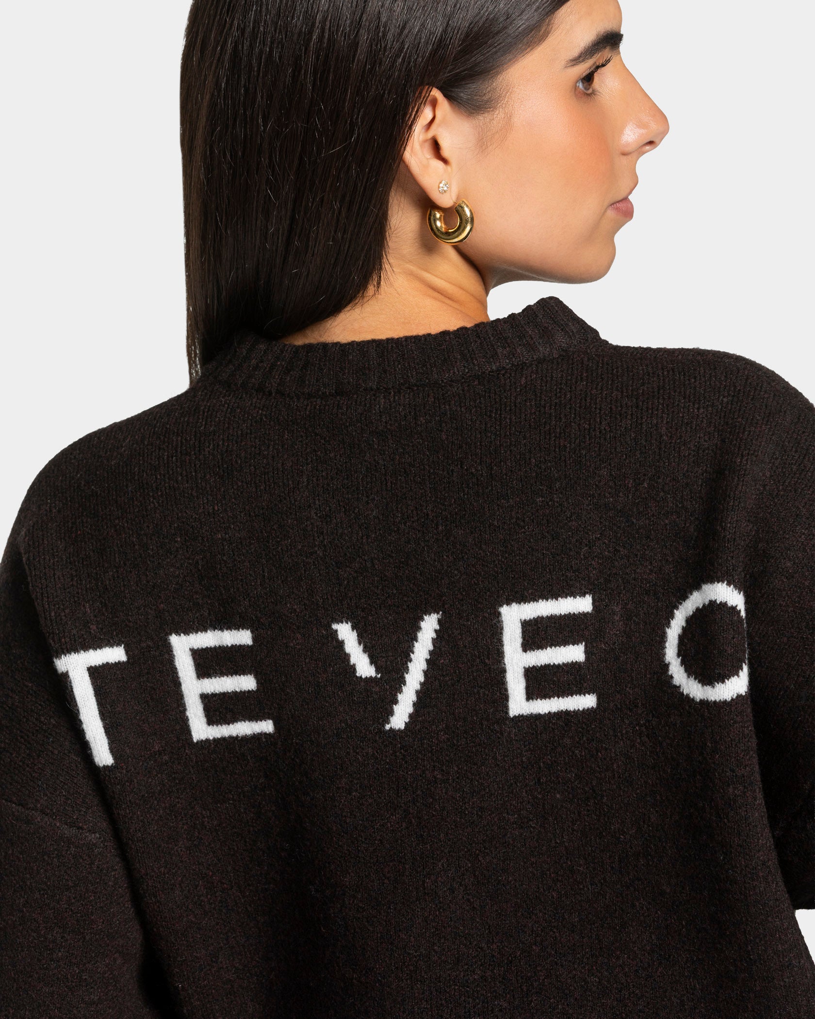 Der Knit Sweater in Dark Chocolate lässt sich optimal mit den anderen Pieces der Knit Kollektion kombinieren.